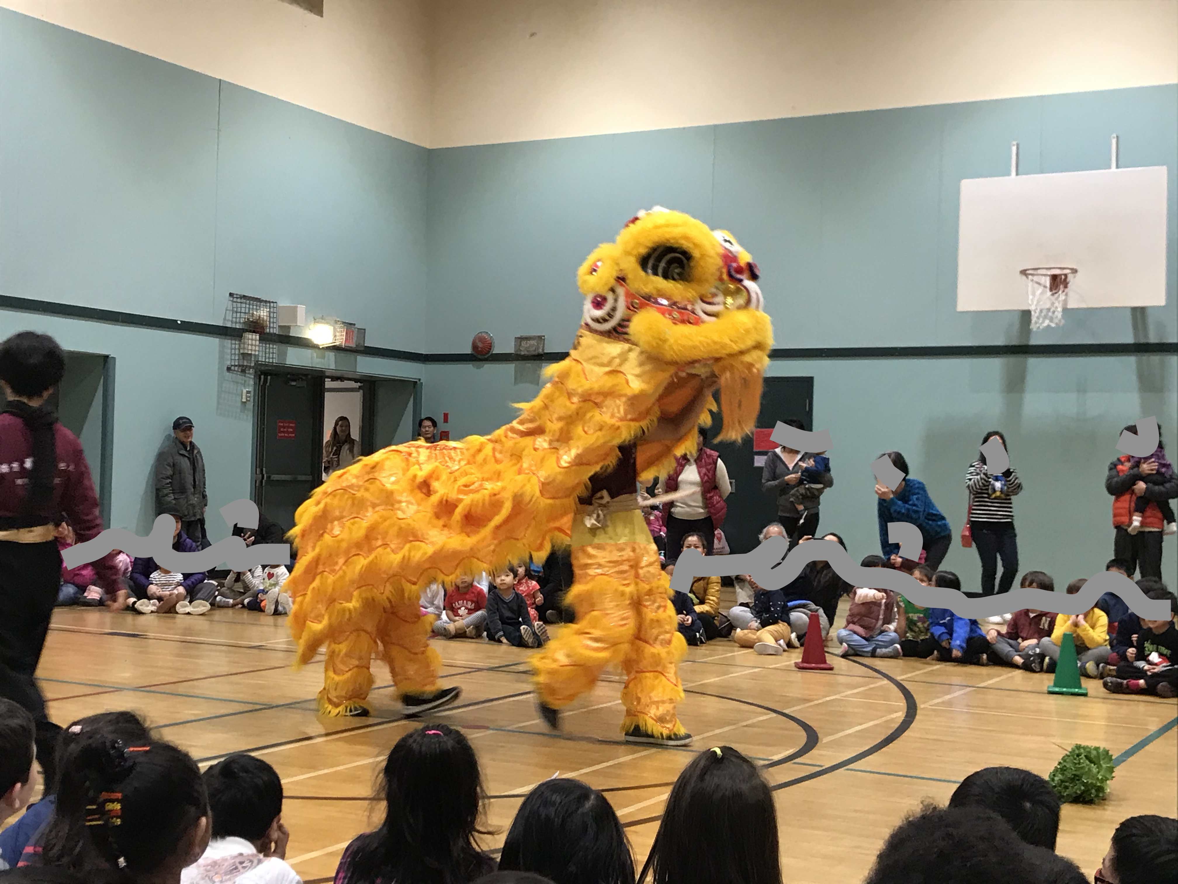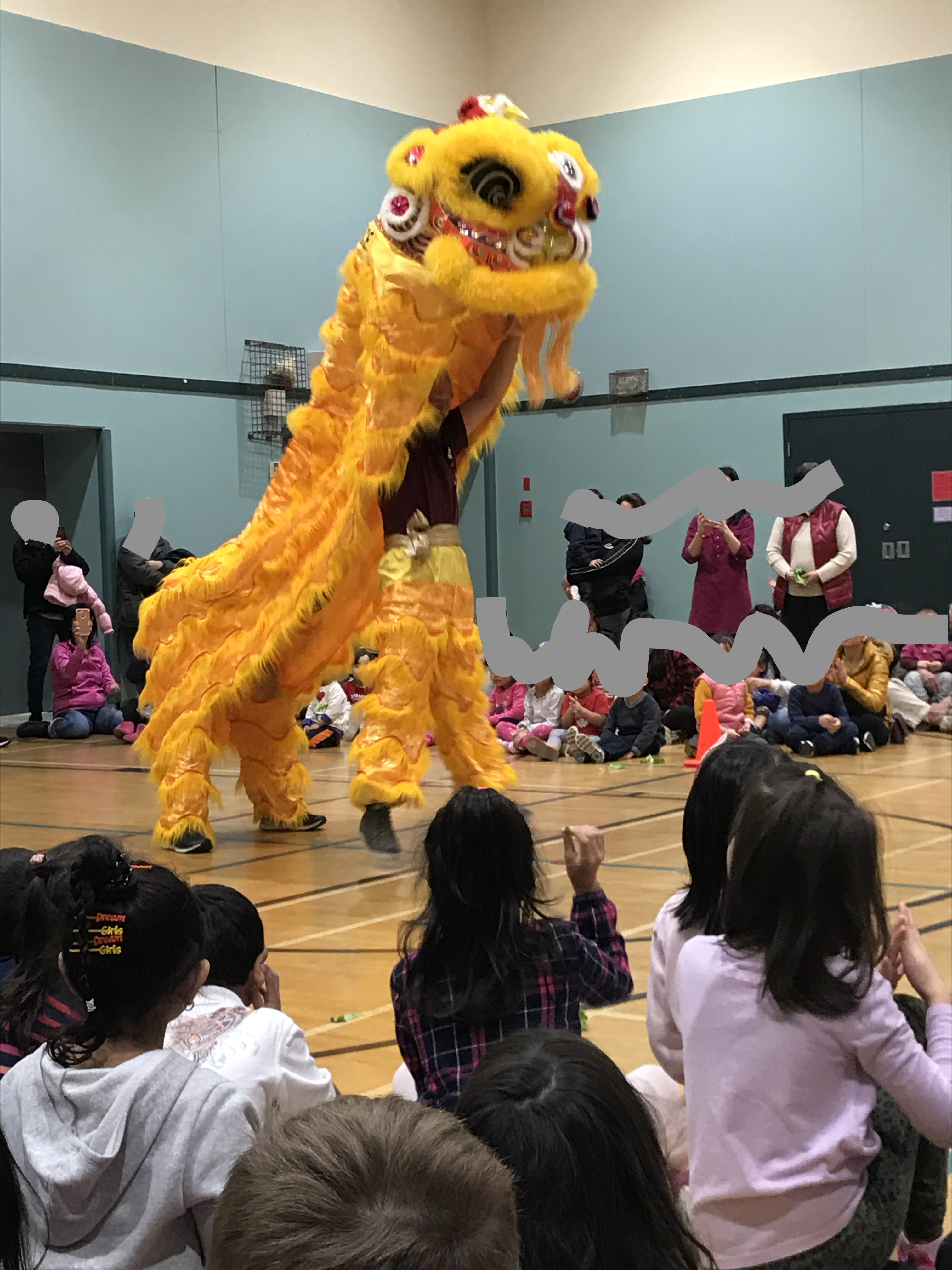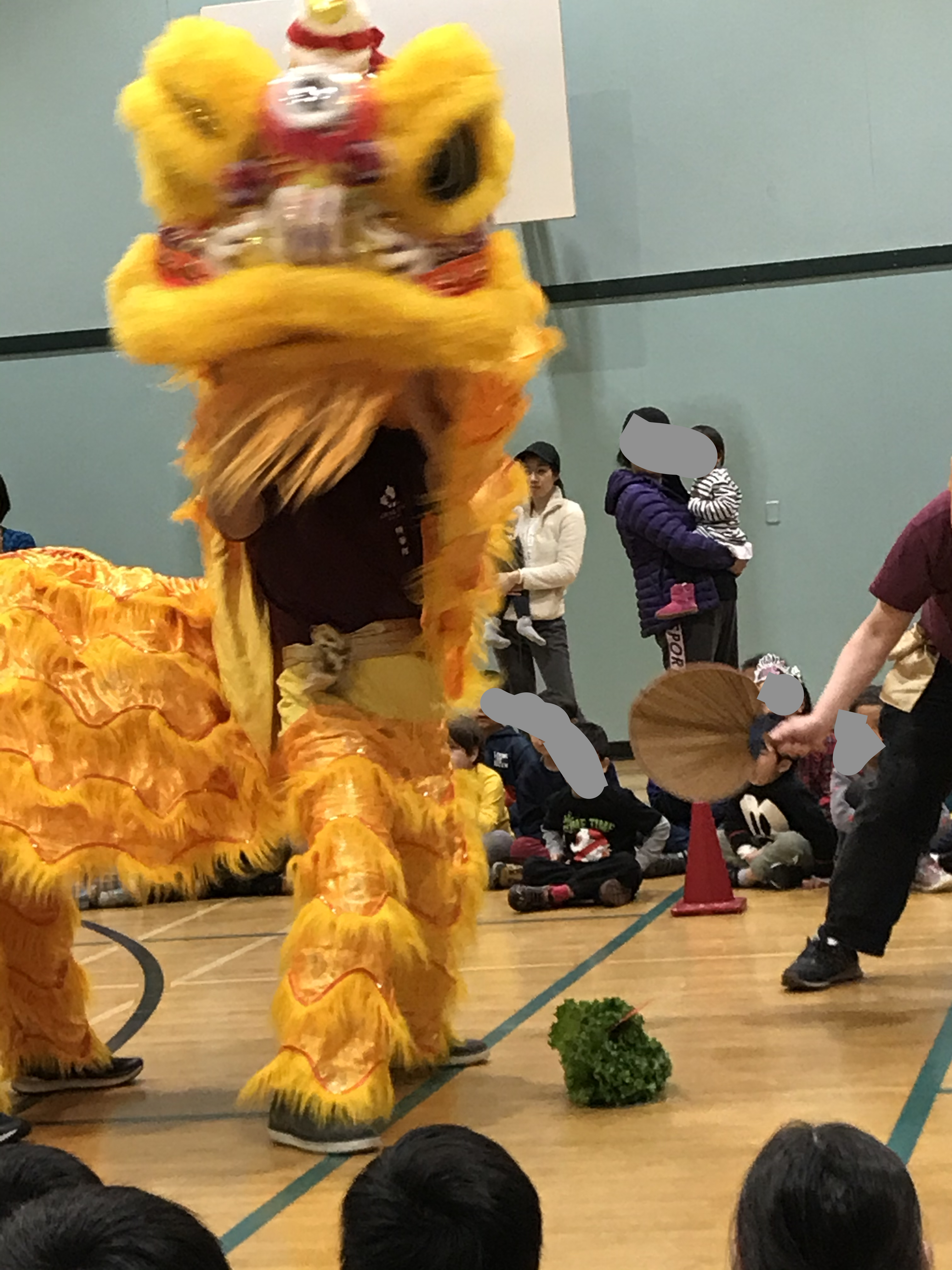 On Wednesday, we got to see a Lion Dance in the gym! It was exciting and we all tried to see if we could get a piece of the lettuce as it is considered lucky to get some! 🙂