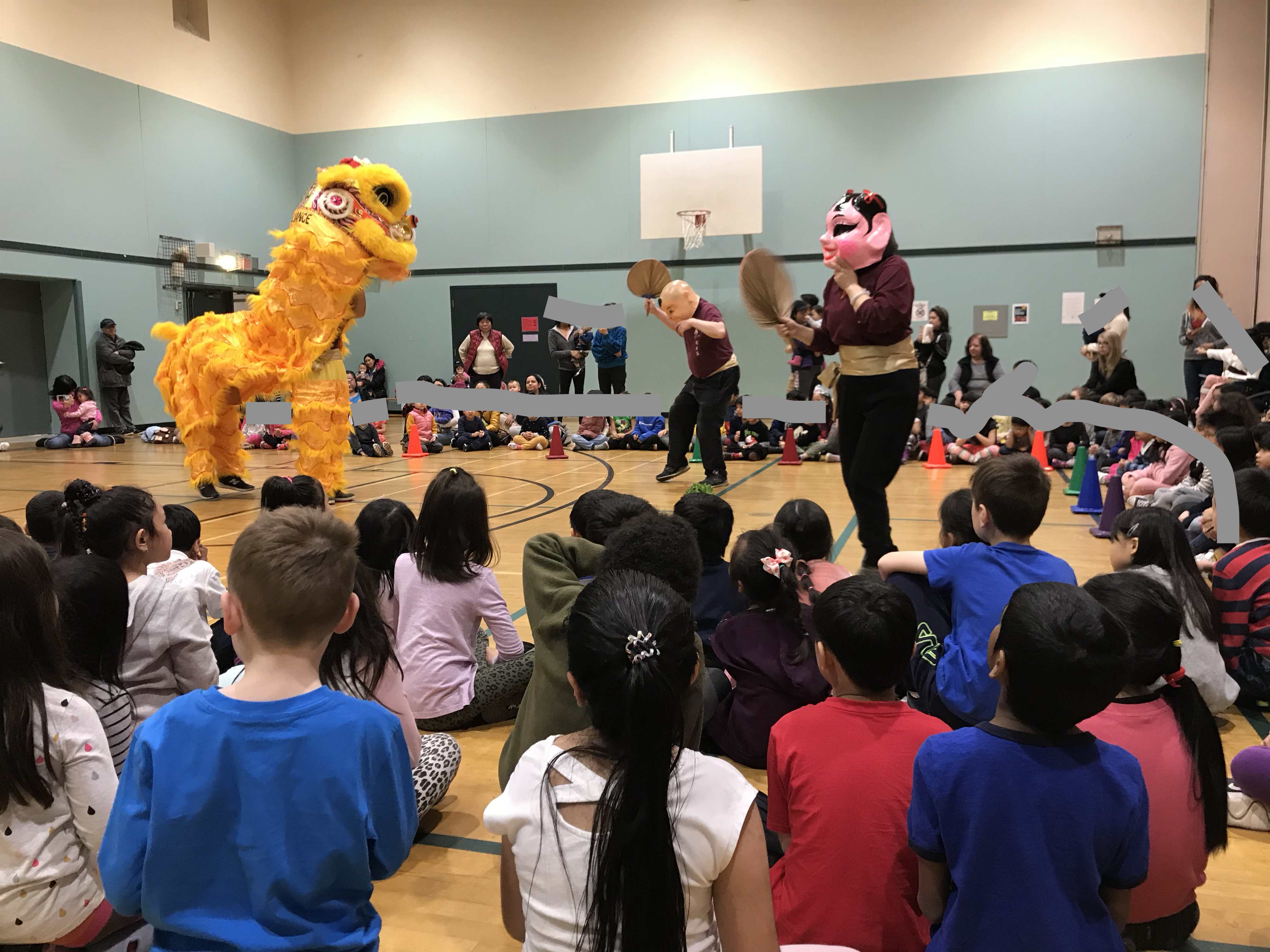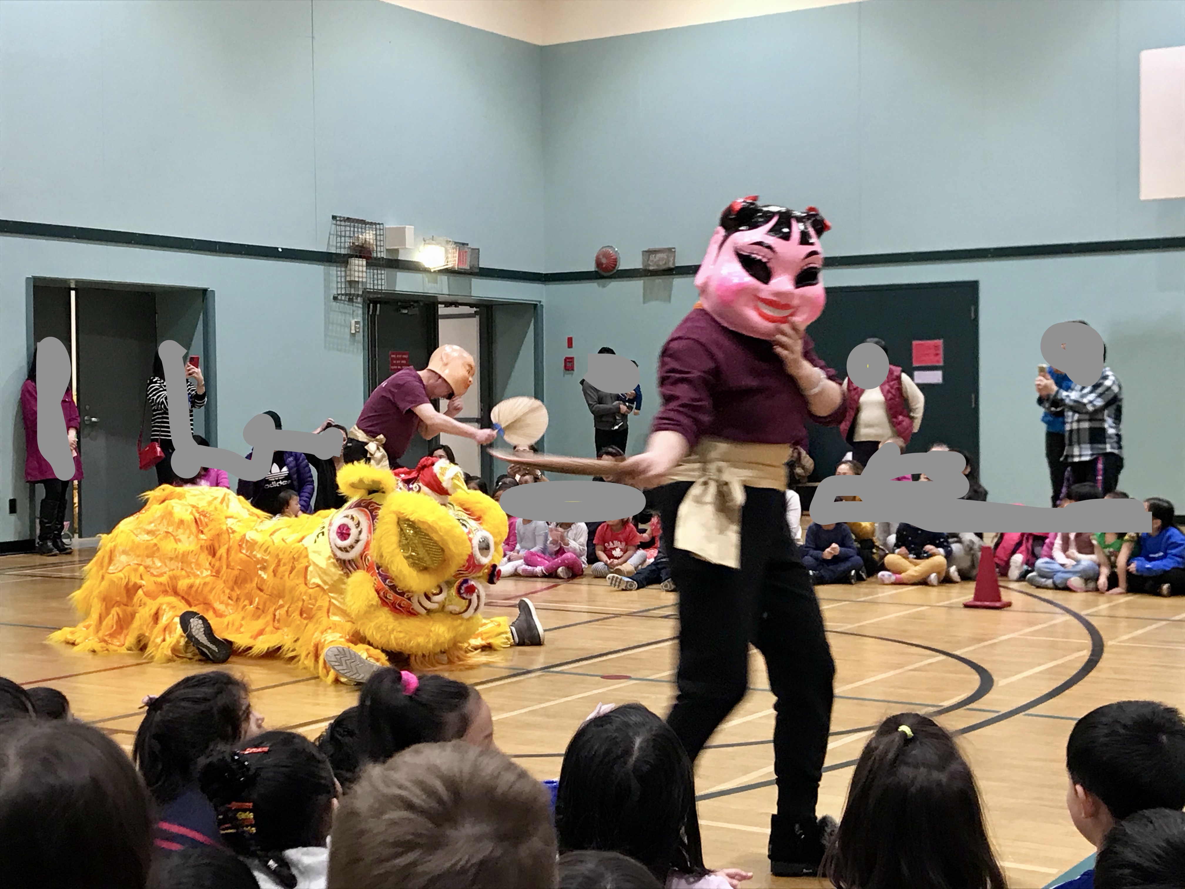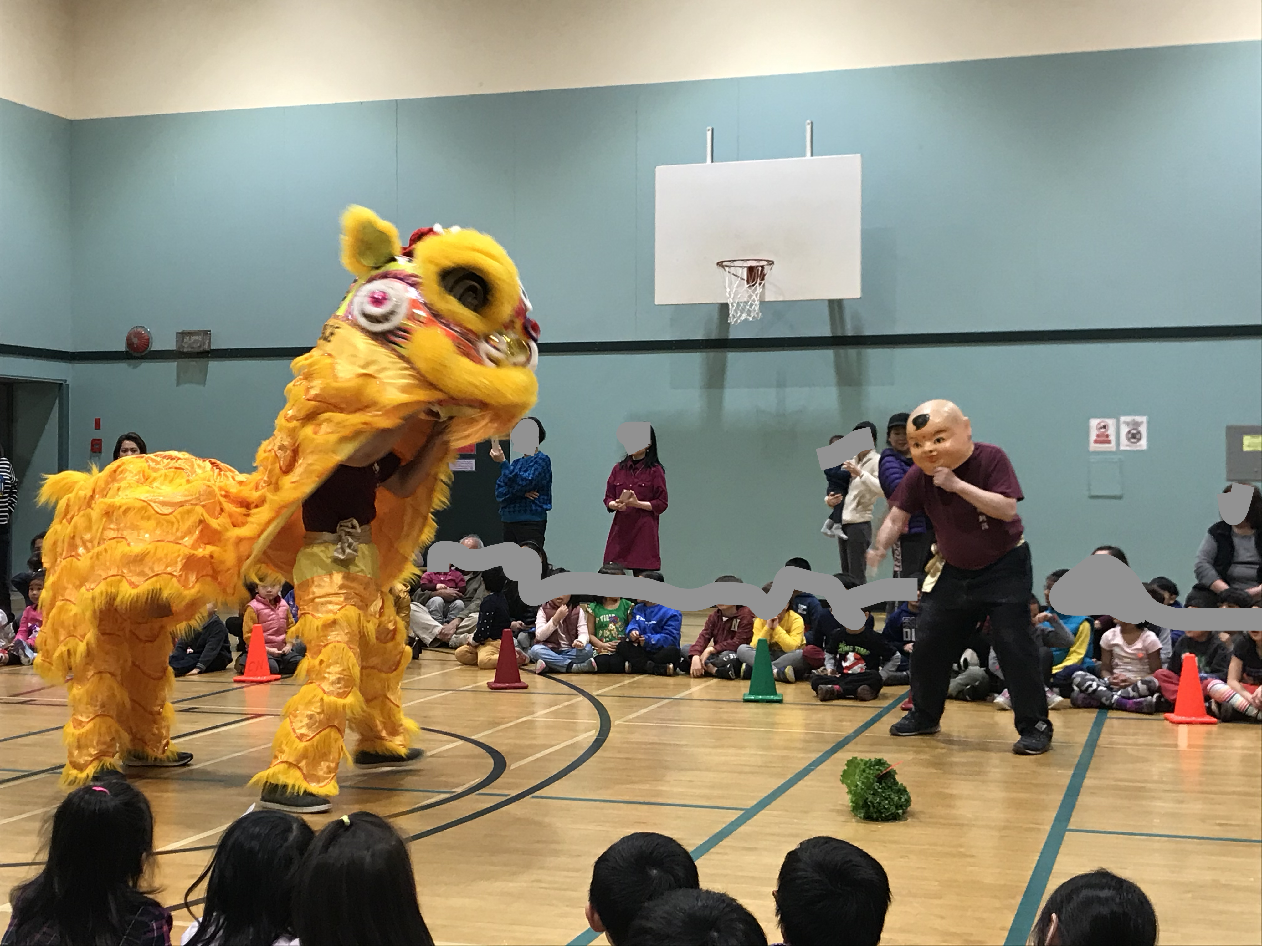 On Wednesday, we got to see a Lion Dance in the gym! It was exciting and we all tried to see if we could get a piece of the lettuce as it is considered lucky to get some! 🙂