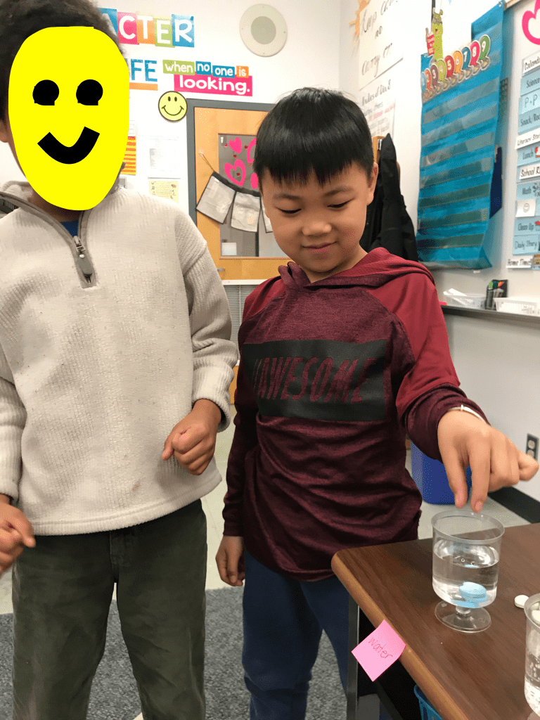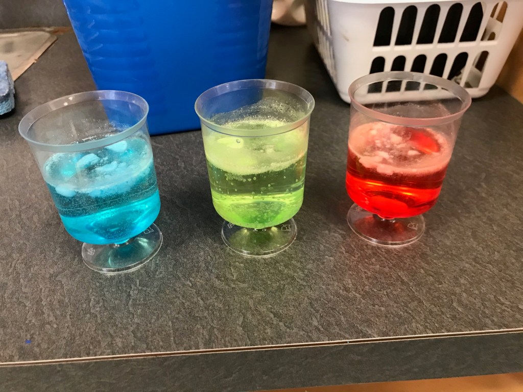We ended the week with a little science experiment using candy hearts! We had three cups of different liquids and put some hearts in each to see what would happen. We had a cup of water, a cup of soda, and a cup of vinegar. The kids made predictions (a new word we learned!) and helped put in the candy hearts. Then they recorded what happened. We checked in with the hearts at the end of the day to observe any changes. There was also some taste-testing of the candy hearts! 🙂