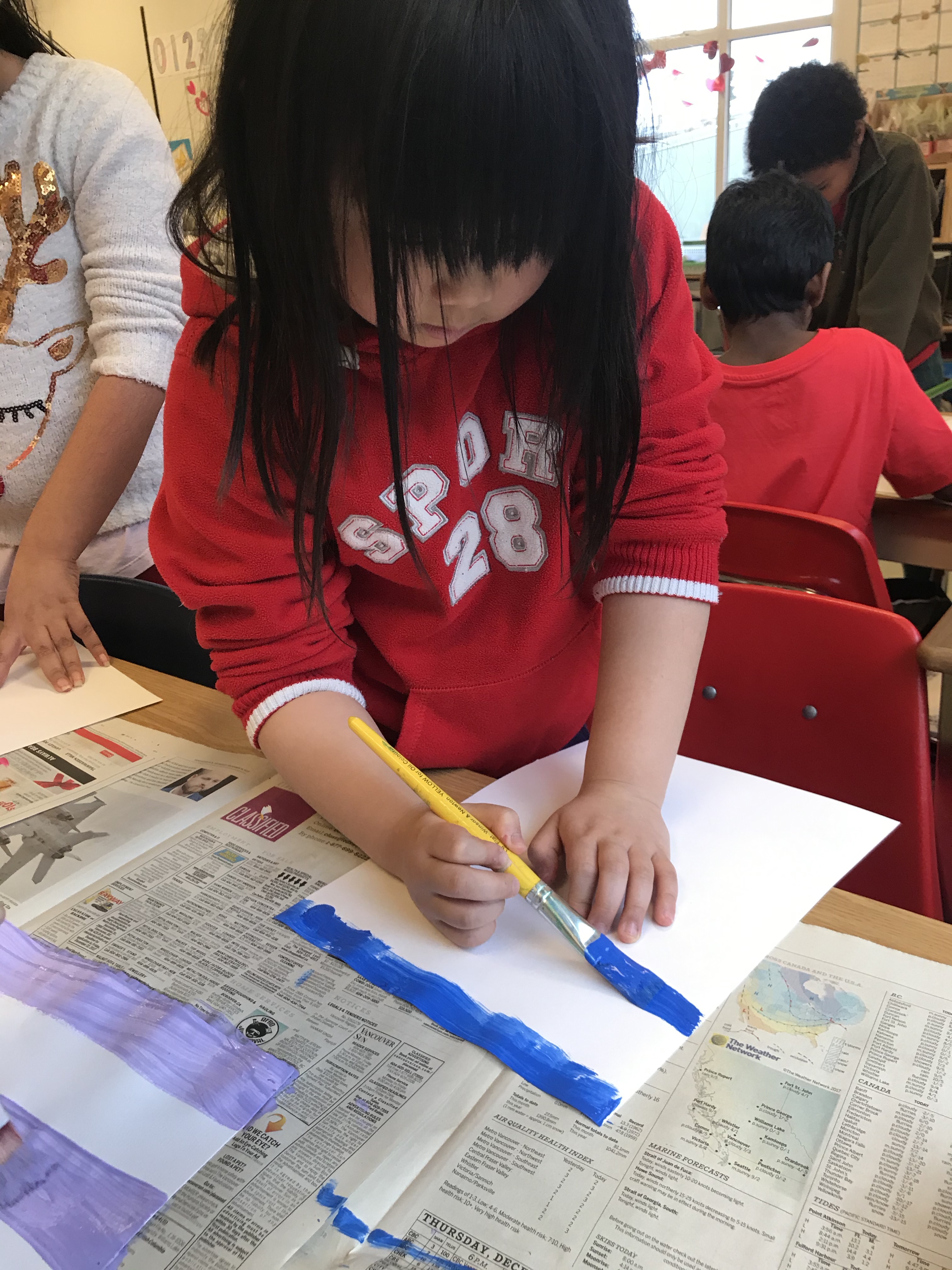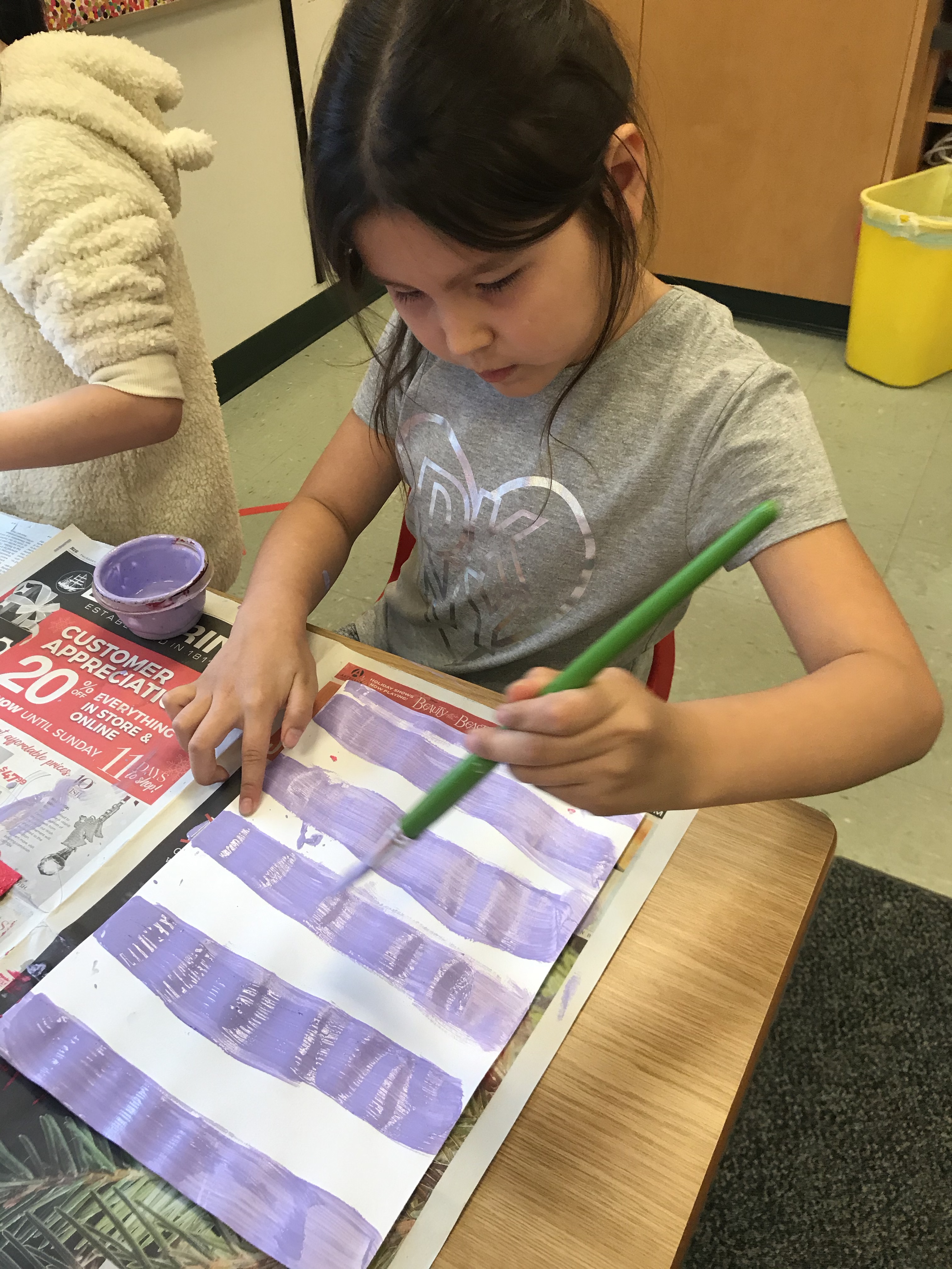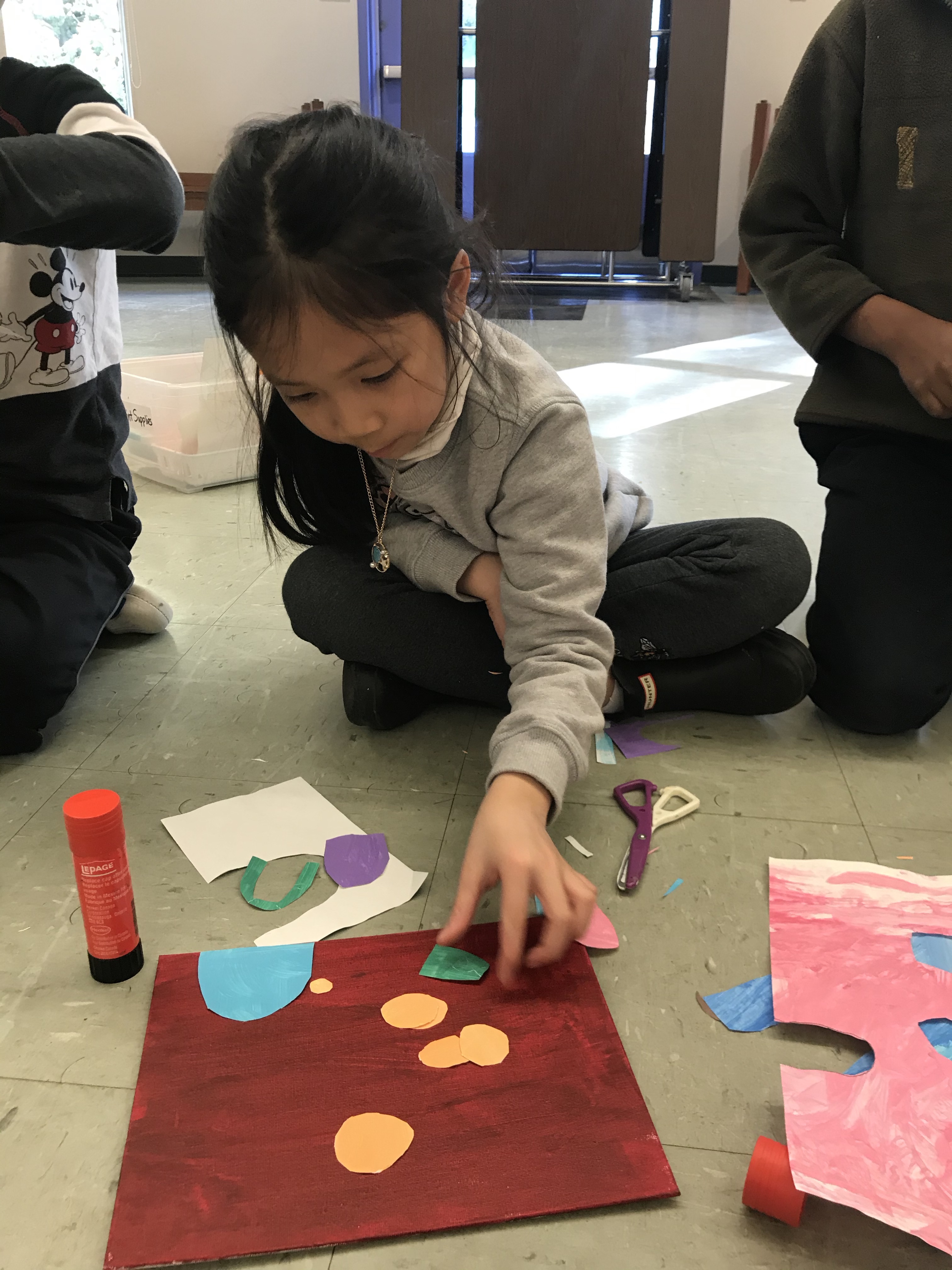 We took some time to do some fine art skills for our Spring Art. They twisted small pieces of tissue paper around the end of a pencil and pressed them onto a piece of cardstock with a dab of white glue. They loved it! It was very interesting to see how the kids liked to place their tissue paper to create certain images and shapes.