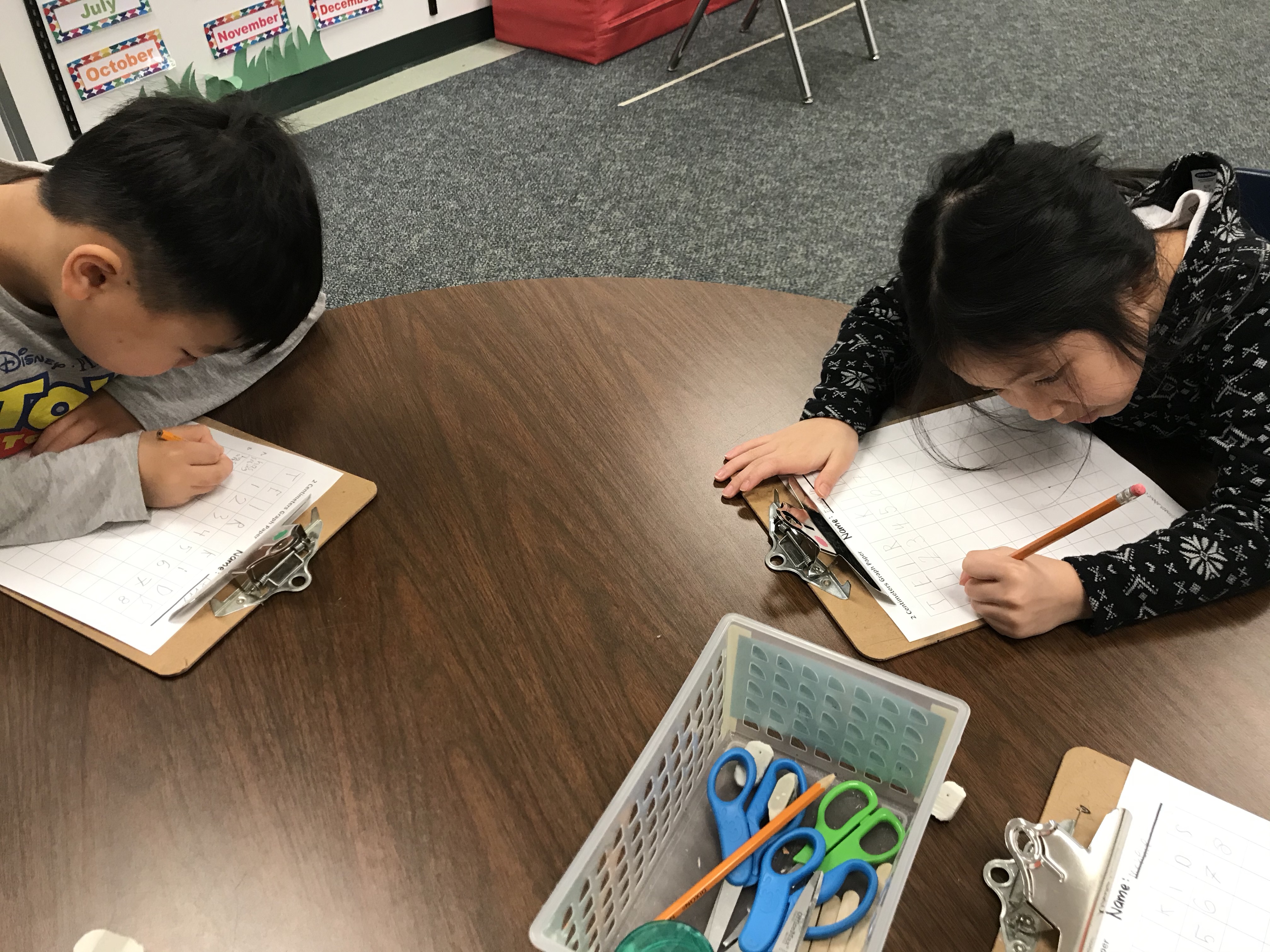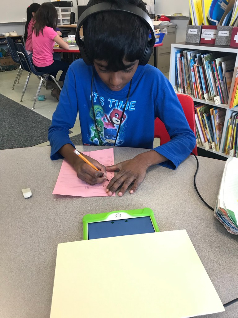 We tried a new multisensory station – listening to words on the Sight Words app on the iPad and trying to spell them out. We are trying to build a stronger bridge between auditory skills and writing, so the students understand that (most of the time), we can utilize what we hear as a way to figure out is what we write down and that there is a connection.